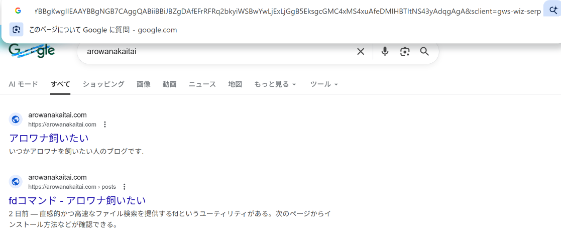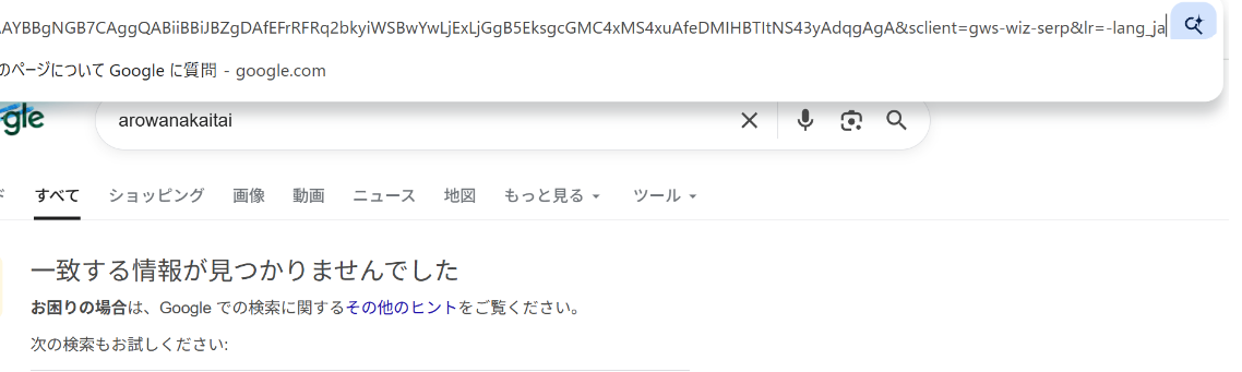 再度アドオンをクリックすると、クエリの末尾から「lr=-lang_ja」が削除され、日本語の検索結果が復活する。