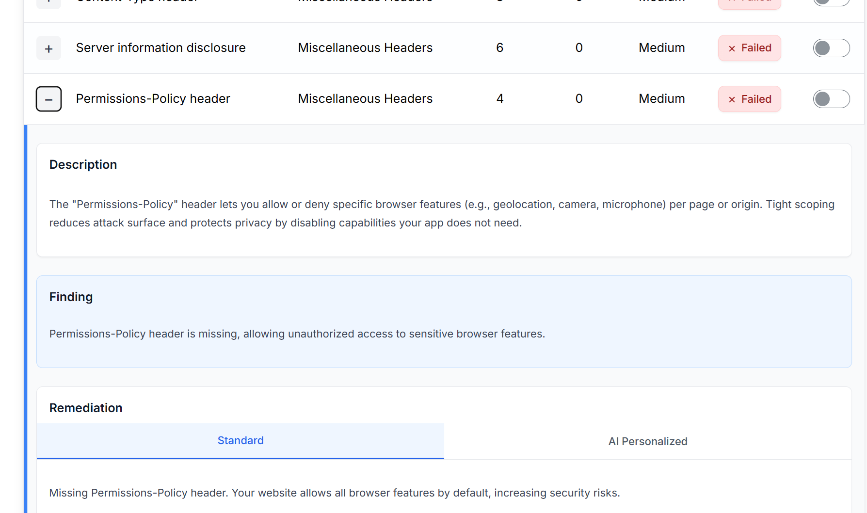 Barrionは、Webアプリケーションのセキュリティ関連ヘッダなどの付与状況を確認し、スコアリングしてくれるサービスである。診断はパッシブに行われ、優先的に改善すべき内容や各スキャン項目の詳細を確認することができる。